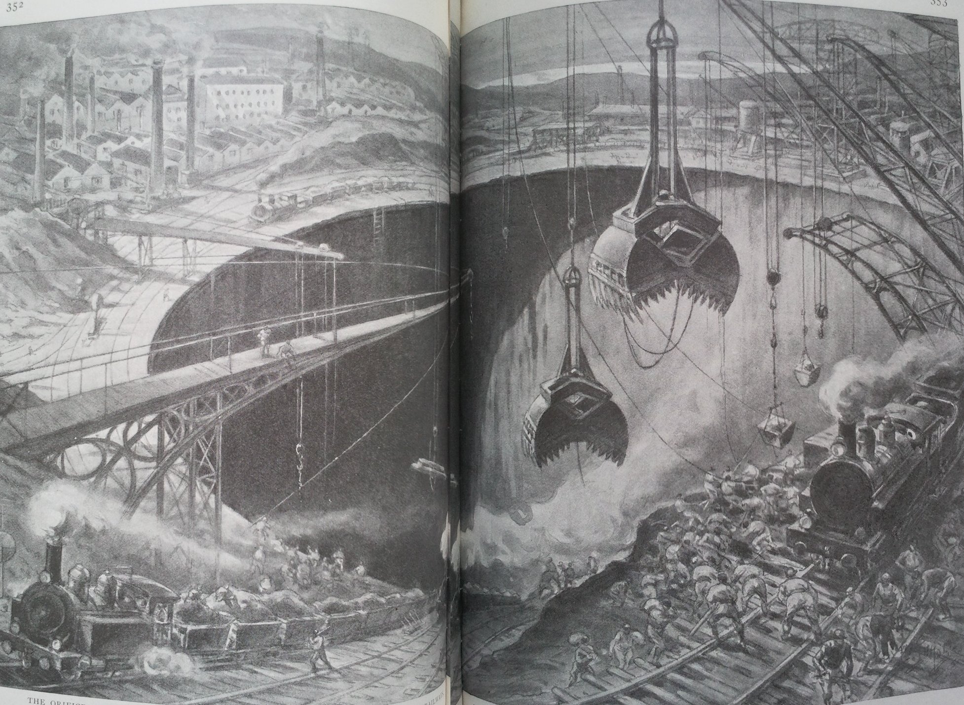 Camille Flammarion wrote an article in 1909 in The Strand Magazine, in which he argued for the many advantages of digging a hole hundreds of metres wide and 2 to 4 miles deep, lined with cast-iron plates. In addition to scientific findings, it would provide a source of geothermal energy. The illustration above gives a wonderful impression of this concept.