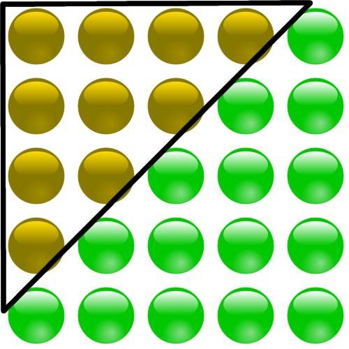 Triangular numbers have many other interesting properties. If we add two successive triangular numbers, we always get a perfect square. This can be shown by algebra or by geometry. The geometric argument is illustrated by the figure below, which shows that the two triangular numbers T(4)=10 and T(5)=15 combine to give a square of side 5.