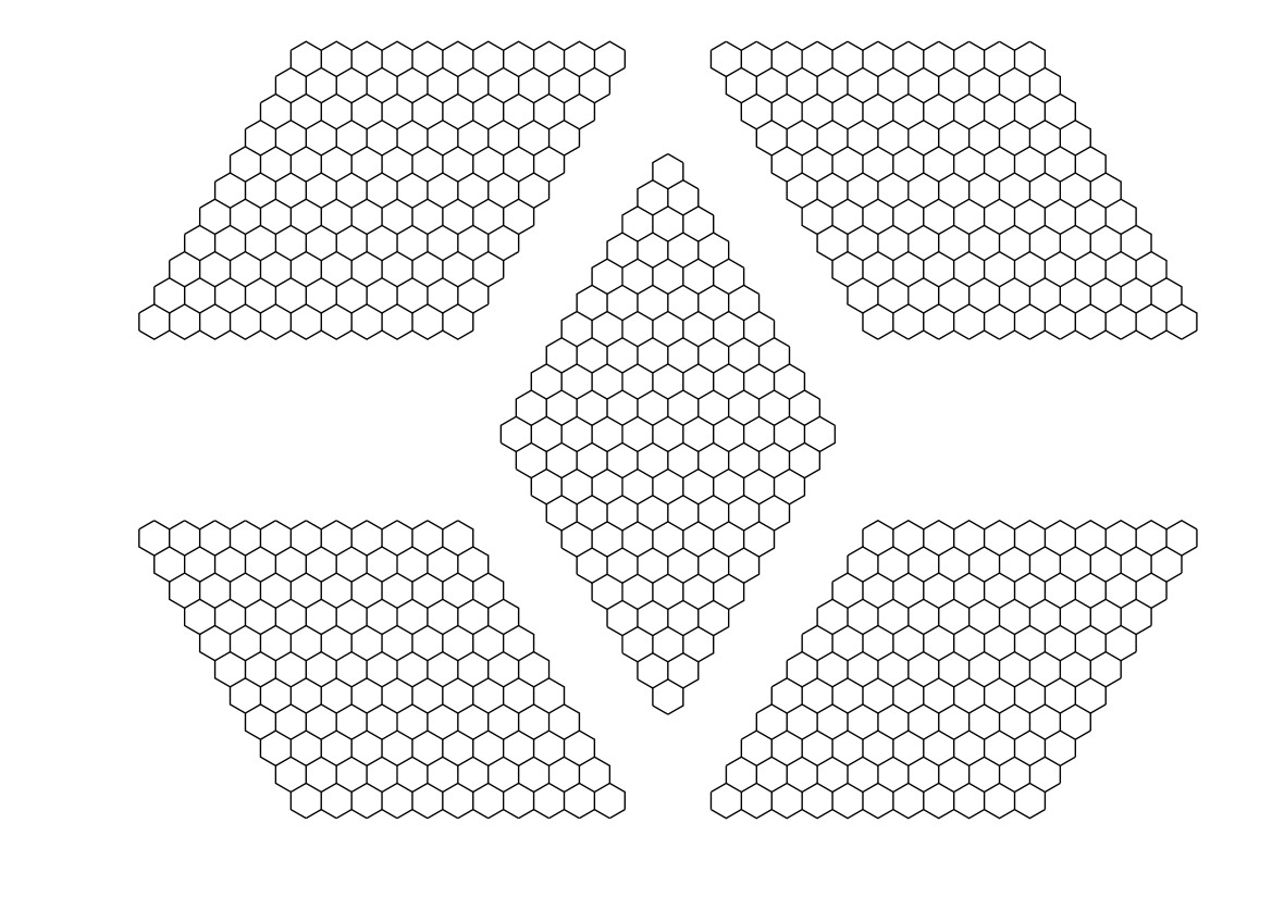Hex Boards can be printed using a PostScript file written by Larry Doolittle. The ASCII file is just fifty lines long, and can be downloaded and printed from this URL: http://doolittle.icarus.com/~larry/hex/. Alternatively, the picture below can be printed, or the game can be played online: iggamecenter.com