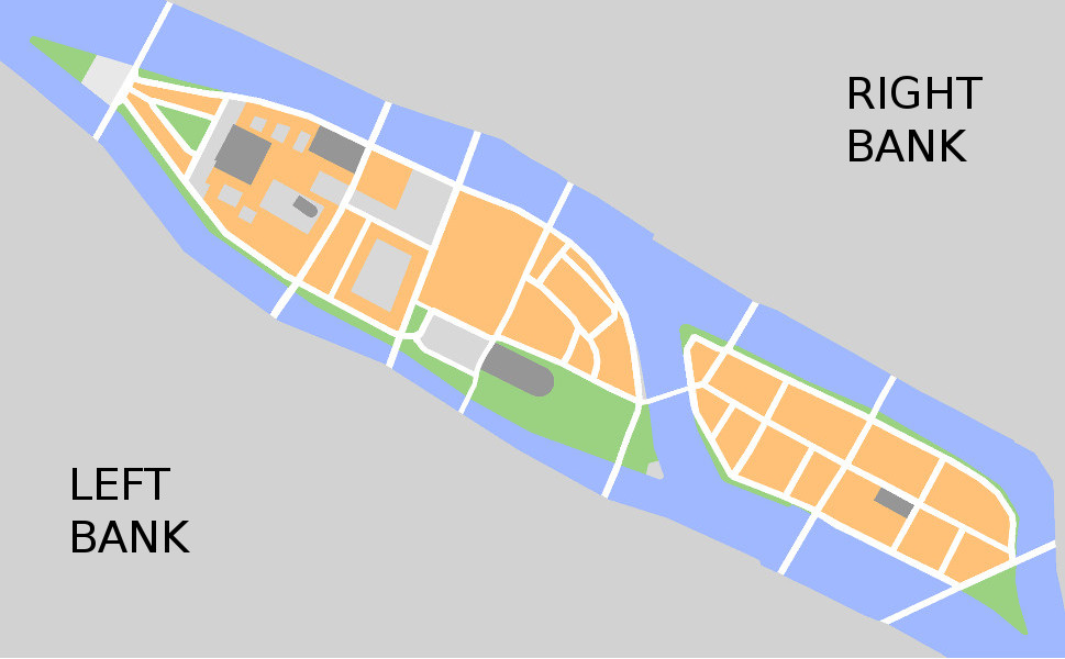 For the Paris problems, both banks of the Seine have seven bridges, an odd number. The two islands each have an even number of links. Thus, the Left and Right Banks must be at the start and end of the route.