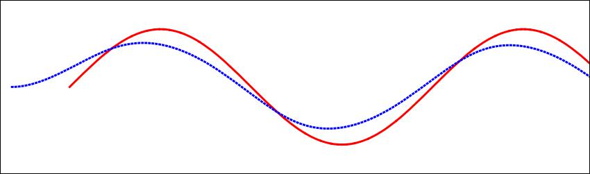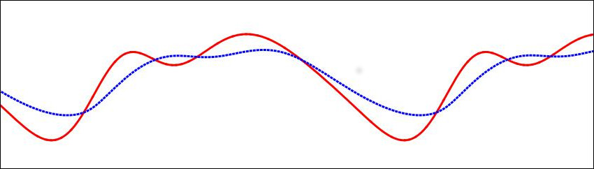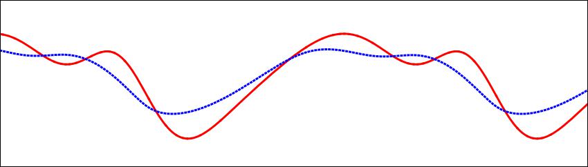 Stan Wagon (2010) gives some Mathematica code to compute the back track from the front one. Using this, the solution when the front point of contact follows a sinusoidal curve (solid red line) is shown in Fig.1. The back wheel (dashed blue line) quickly adjusts to this and asymptotes to a sinusoid with slightly smaller amplitude.