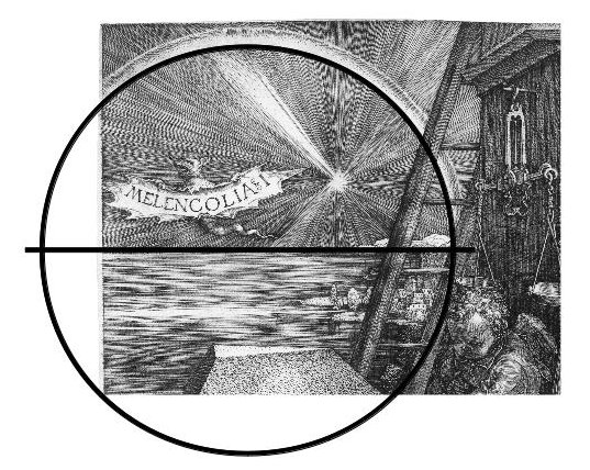 Examination of the high-resolution image of the engraving available on Wikipedia is a rewarding experience and will reveal a wealth of interesting details. There are many other enigmas in Melencolia and you may discover something new or dream up a novel theory about meanings hidden in the work. Perhaps you can explain the shadowy figure on the face of the polyhedron.