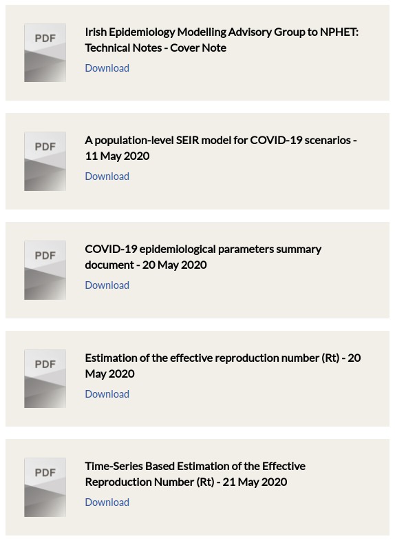Irish Epidemiological Modelling Advisory Group to NPHET: Technical Notes.