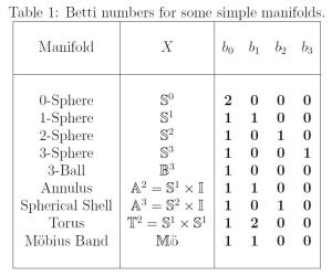. Several other examples are shown in the table above. The invariance greatly helps topologists to categorize topological spaces.
