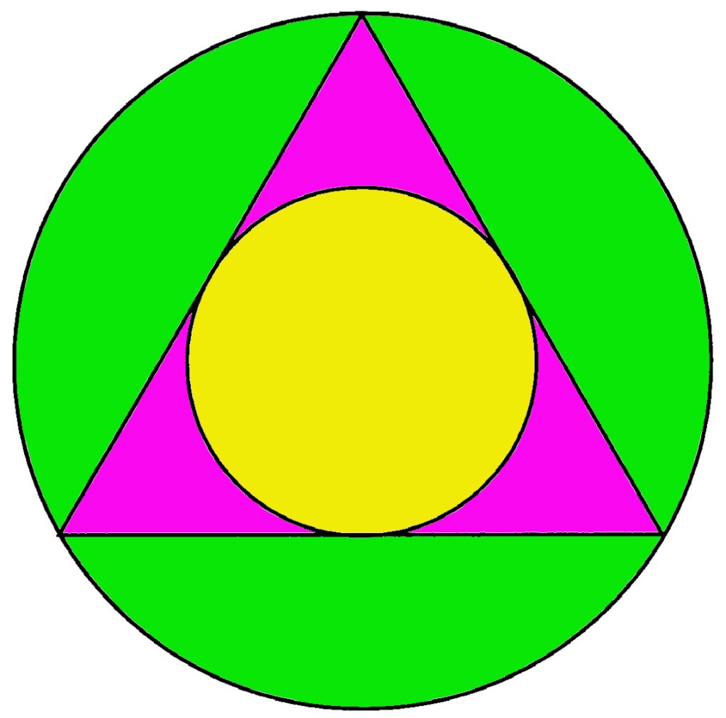 If circles are drawn in and around an equilateral triangle (a regular trigon), the ratio of the radii is . More generally, for an N-gon the ratio is easily shown to be