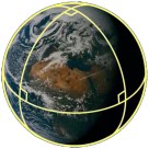 If we want a system that respects Euclid’s first four postulates, two ‘lines’ must intersect in a single ‘point’. This can be accomplished by identifying pairs of antipodal points; so, a ‘point’ in this model is actually a pair of points. Since each such pair of points lie on a radial line through the origin, we can associate the set of ‘points’ with the set of lines through the origin. This set of lines is known as the real projective plane . However, there is no metric defined for the projective plane while in elliptic geometry a metric is defined enabling lengths and angles to be measured.