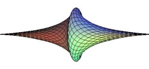 The distinction can be illustrated by considering two straight lines in a two-dimensional plane that are both perpendicular to a third line (see Figure above). In Euclid’s geometry, the two lines remain equidistant from each other (they are parallel). In hyperbolic geometry, they veer away from each other, while in elliptic geometry, they curve toward each other and intersect.