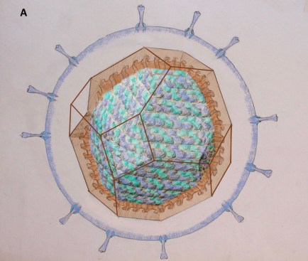 The Elements ends with a flourish. In the final book, Euclid proves that there are exactly five Platonic solids — polyhedra with identical polygonal faces. One of these is the icosahedron, with twenty triangular faces. Many quasi-spherical viruses have icosahedral symmetry.