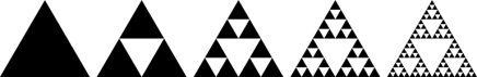 , a pattern becomes clear: the shape of the graph increasingly resembles the approximations to the Sierpinski triangle. This is formed by starting with an equilateral triangle, dividing it into four identical pieces, and removing the central piece (an inverted triangle).