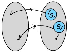 The figure illustrates a map from a set to its power set
