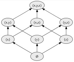 . Thus, every finite set is smaller than its power set. The figure above shows the power set of the set