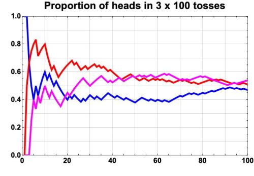 If a fair coin is tossed ten times, what are the chances of four heads and six tails? Bernoulli answered questions like this, formulating the binomial distribution, a workhorse of probability and statistics, in the process. The proportion of heads converges to one-half as the number of trials increases. By performing many trials, we increase the level of confidence to arbitrary precision: the more trials, the greater the degree of certainty.
