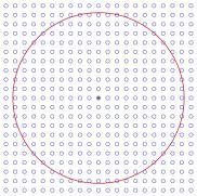 Obviously, each generic unit square aligned with the lattice contains a single lattice point, so the number of points in the circle should be approximately given by the area . The challenge is to bound the error term. Gauss made some strides in solving the problem, but a general solution is lacking.