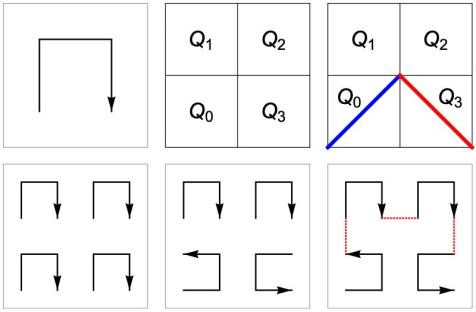 The Hilbert curve can be constructed as the limit of a sequence of functions of increasing detail. The zero-order map is constant: . We move from