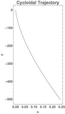 For larger times, the solution is very surprising. The solution corresponds to an inverted cycloid. We plot the solution for 60,000 seconds (16.6 hours) in the Figure below.