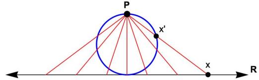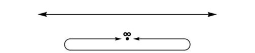 The simplest way to extend a locally compact space to a compact space is to adjoin a single point, usually denoted . The real line can be extended by adding a point at infinity, which converts the topology to that of a circle. We imagine the line to be bent around so that the extremes meeting at the point