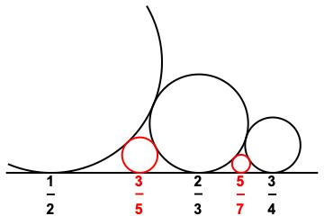Ford’s paper (Ford, 1938) is still worthwhile reading. He established some results on the approximation of an arbitrary real number by rationals. He also showed the link between his circles and the Farey series. If we consider two tangent circles, associated with and