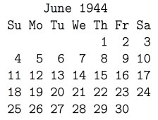 Finally, we remark that Linux users can just type “cal June 1944′‘ to get:
