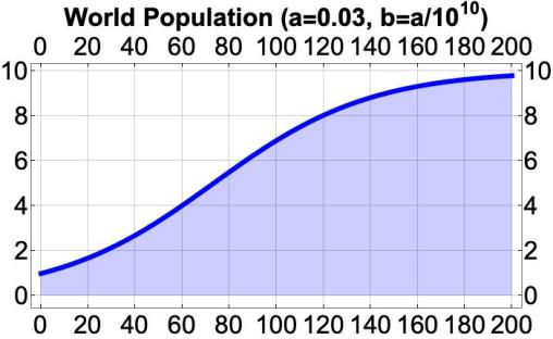 The population increases to an asymptotic value for large time, following an S-shaped curve, as shown in the Figure at the head of this article. Here, the initial population is one billion,