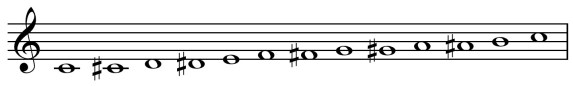 ). Eight of the notes — C, D, E, F, G, A, B and another C one octave higher — comprise the `diatonic scale’, while the remaining five sharp notes (denoted
