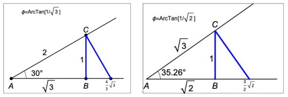 The aim is to arrange the notes of the scale on a line — the frequency axis — using simply geometry to obtain the required frequency ratios. We start with a right-angled triangle. If the side lengths are 1, and 2, the angle A is